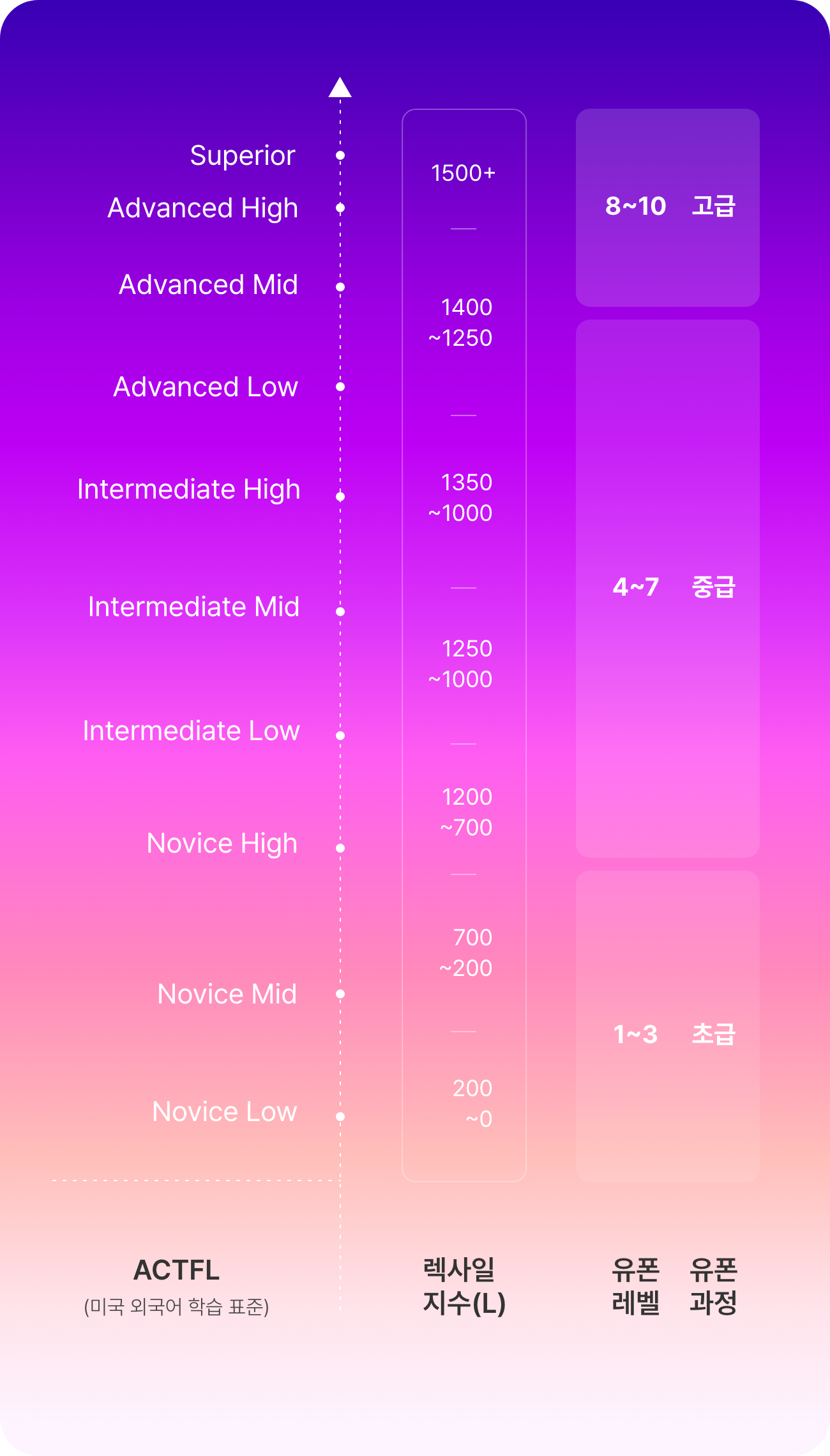 * 유폰은 미국외국어교육위원회(ACTFL)에서 제시하는 표준 레벨에